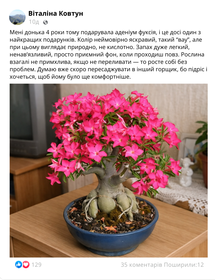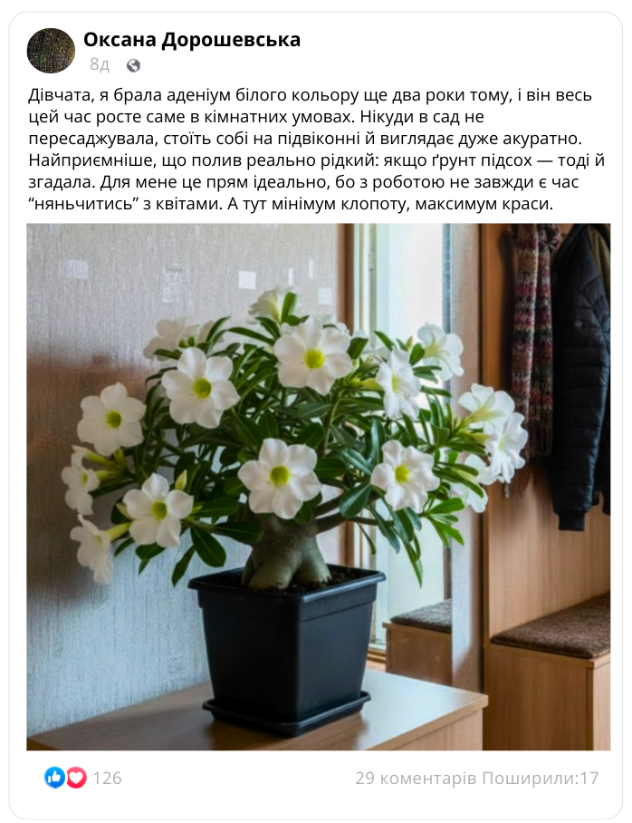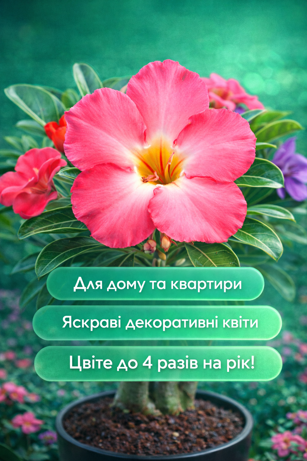 Аденіум «Solaris»: декоративна рослина, що цвіте до 4 разів на рік!