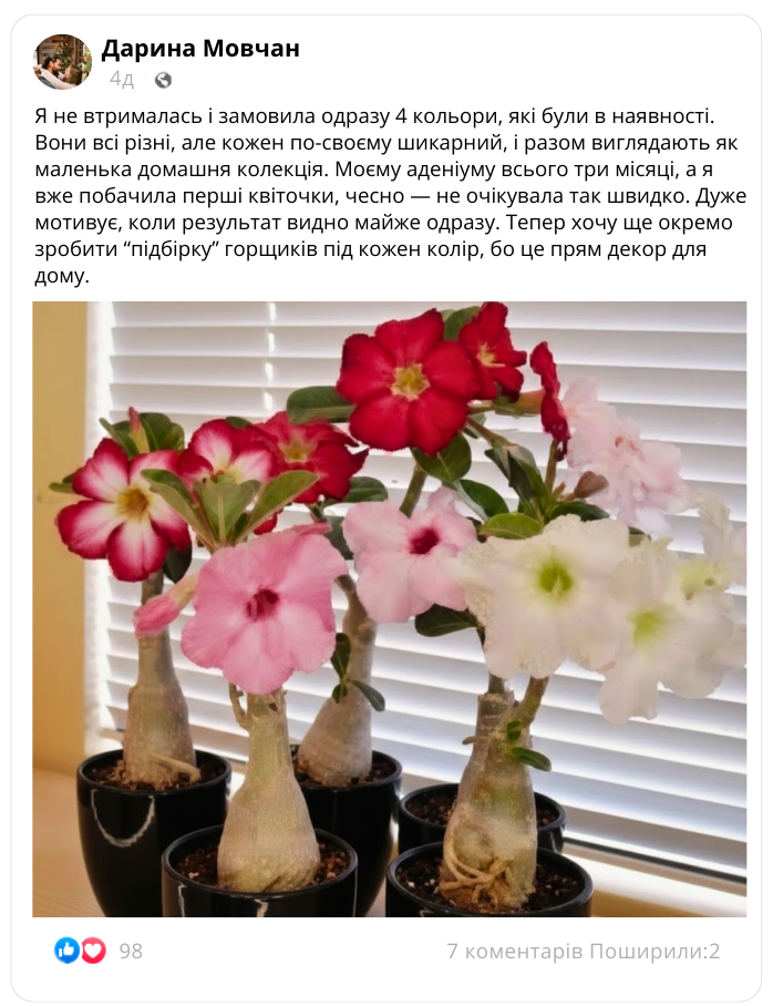 Оберіть колір кімнатного аденіуму «Solaris»!
