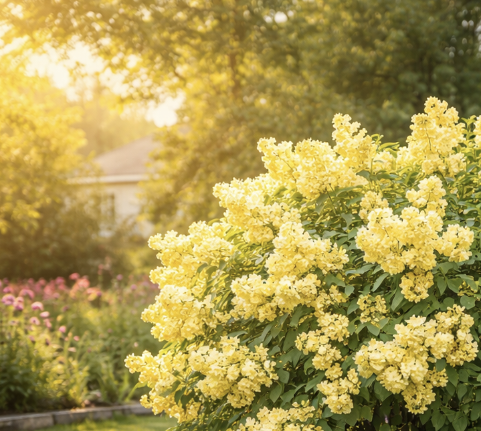 «Voyage» — декоративний сорт французької селекції, який цінується за компактний ріст, пишні махрові суцвіття та стабільне весняне цвітіння. Кущ формує акуратну густу крону висотою приблизно 2,3–2,5 метрів.