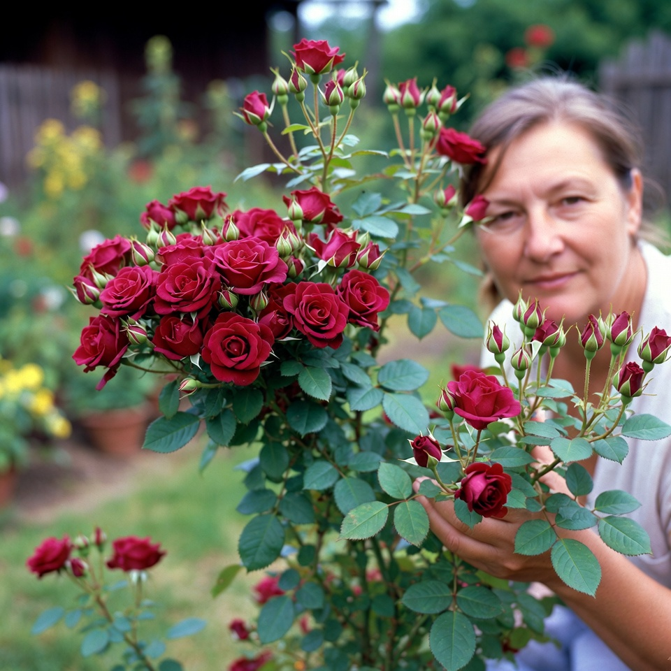 Квіти багатопелюсткові, візуально пишні, завдяки чому кущ виглядає об’ємно й дорого в період цвітіння.