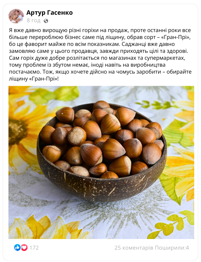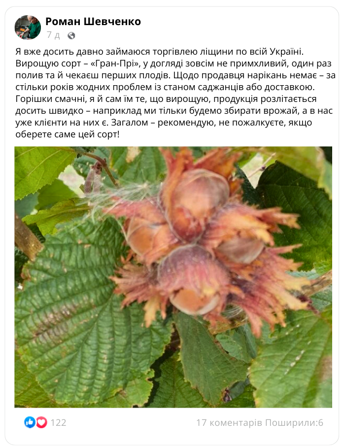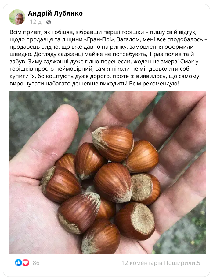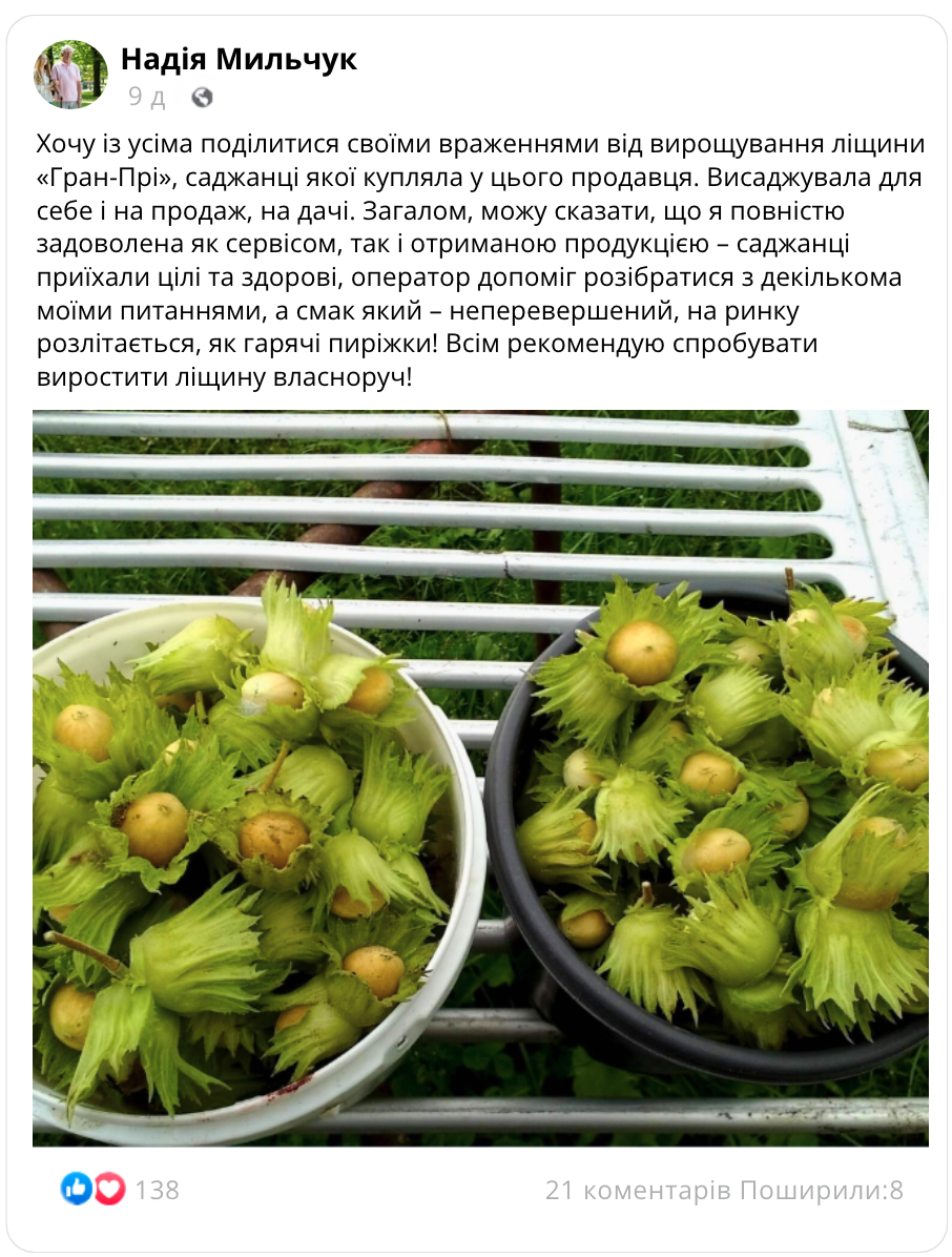 Покупці охоче купують ліщину «Гран-Прі» для своєї родини.