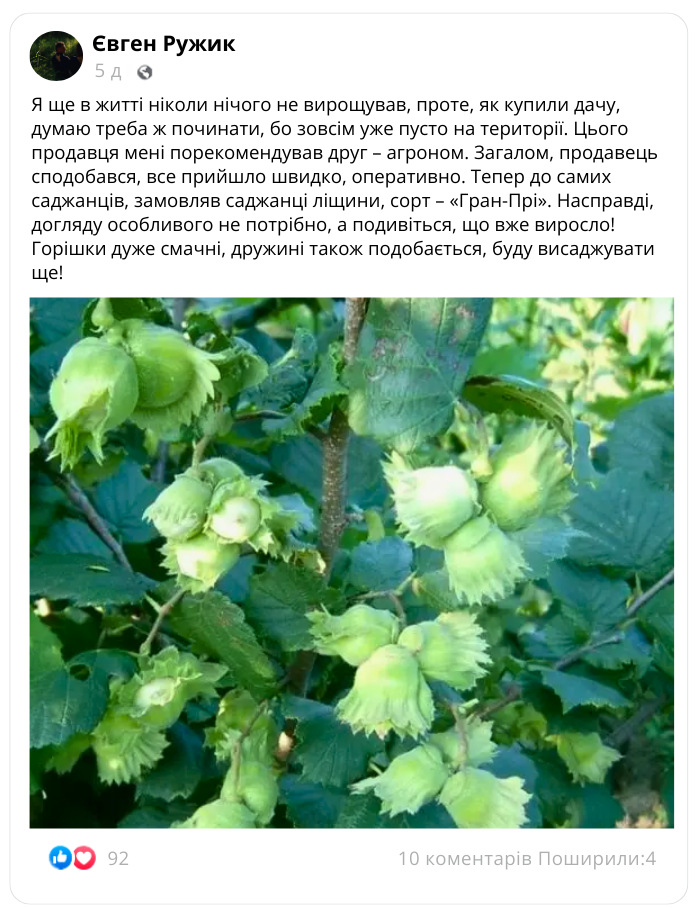 Ліщина «Гран-Прі»: надприбутковий сорт для вирощування в Україні