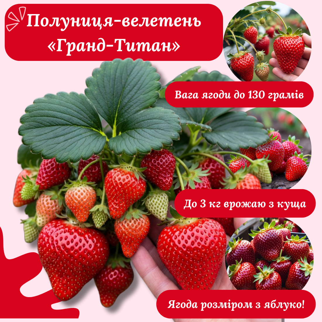 Високопродуктивна полуниця Гранд-Титан — до 3 кг солодких медових ягід з куща!