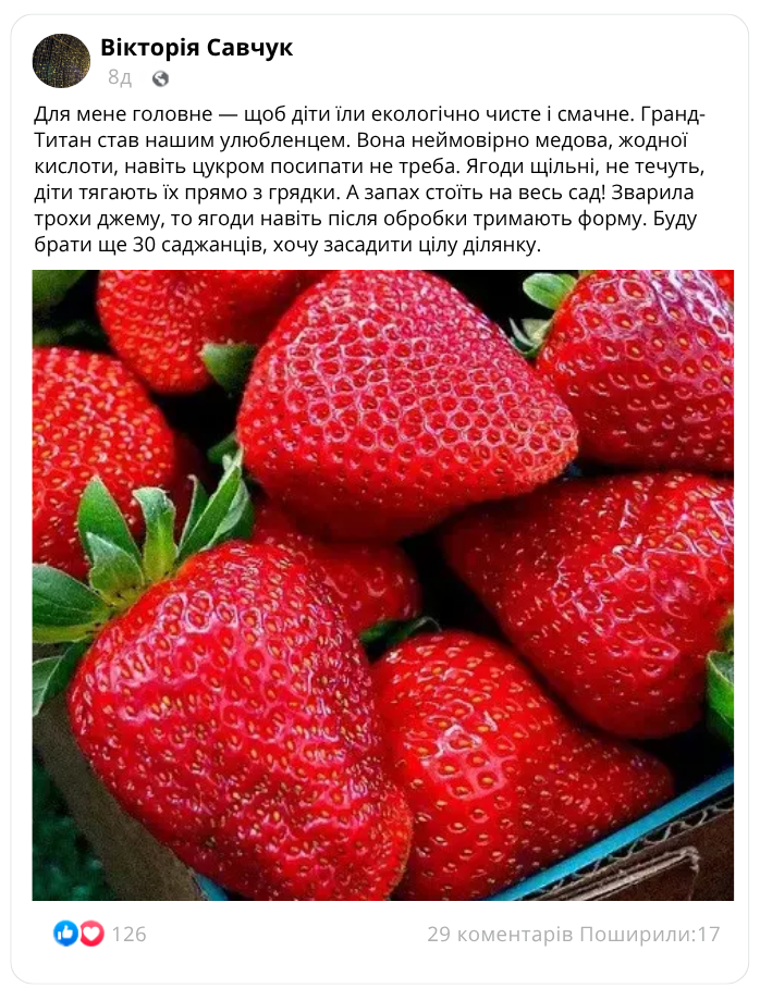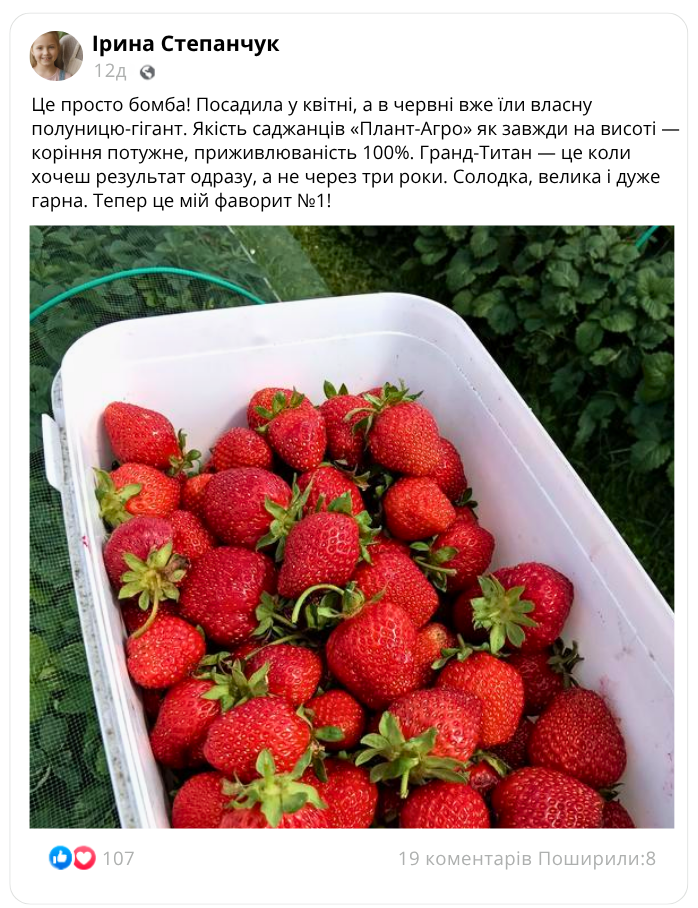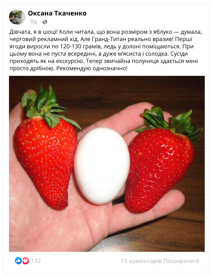 Полуниця-велетень "Гранд-Титан": рекордні врожаї та солодкий медовий смак