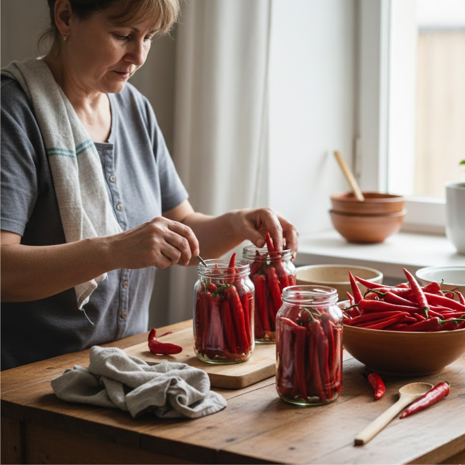 Гострий чилі традиційно цінують за насичений смак і аромат, а також за вміст природних сполук, що додають стравам яскравості. Використання свіжого перцю з домашнього вирощування дозволяє уникати зайвих домішок і мати натуральний продукт під рукою.