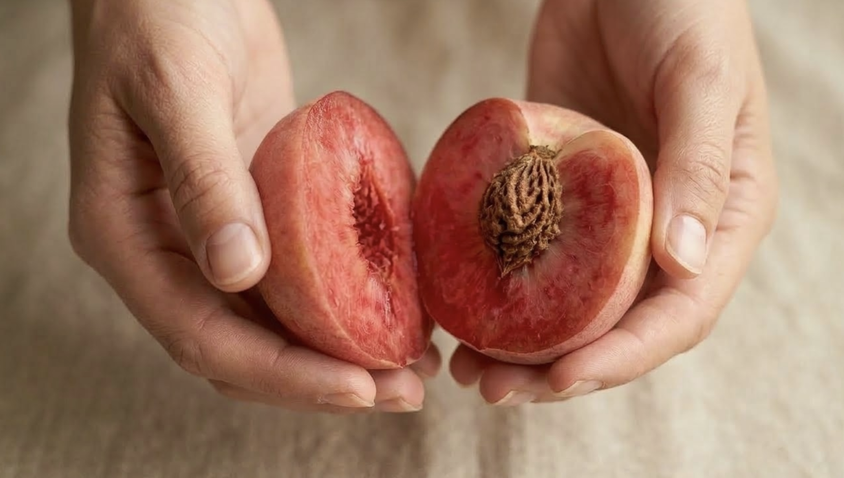 Плоди мають дуже привабливу гладеньку шкірку ніжно-рожевого кольору та ефектний рожево-червоний м’якуш, який розкішно виглядає в розрізі.
