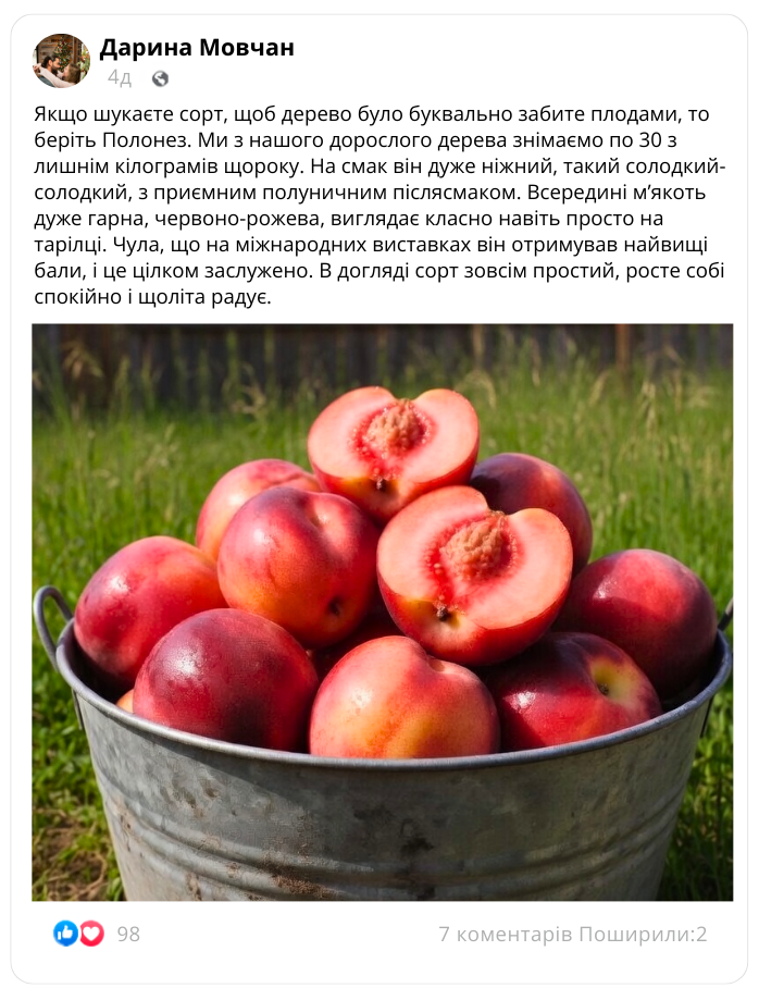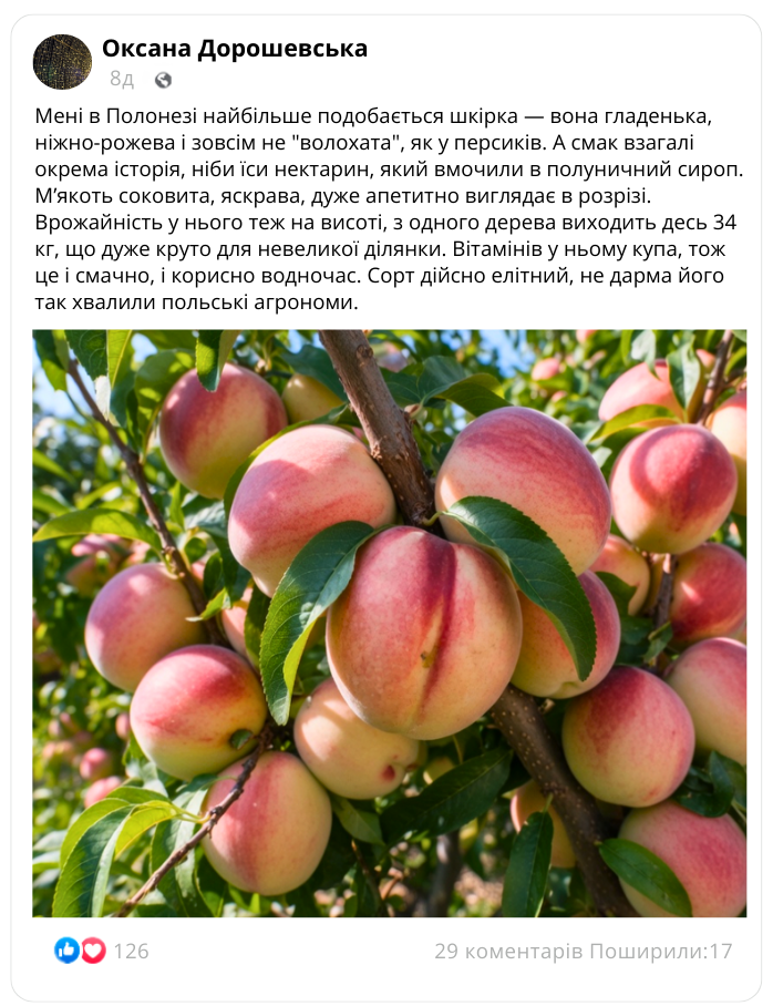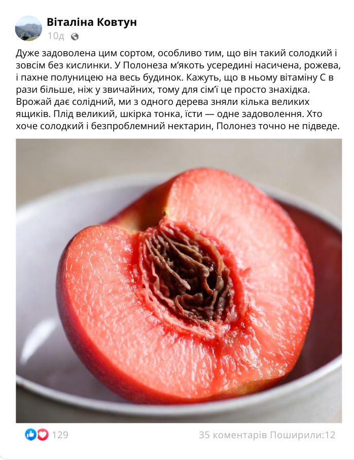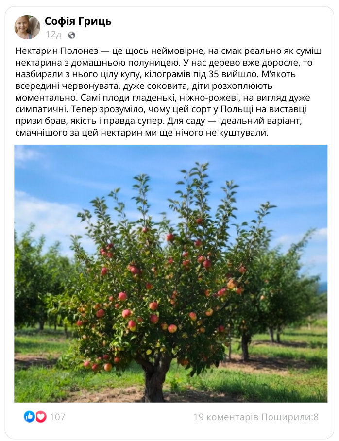 «Полонез»: саджанці нектарину, який підкорив Європу та дивує полуничним смаком!
