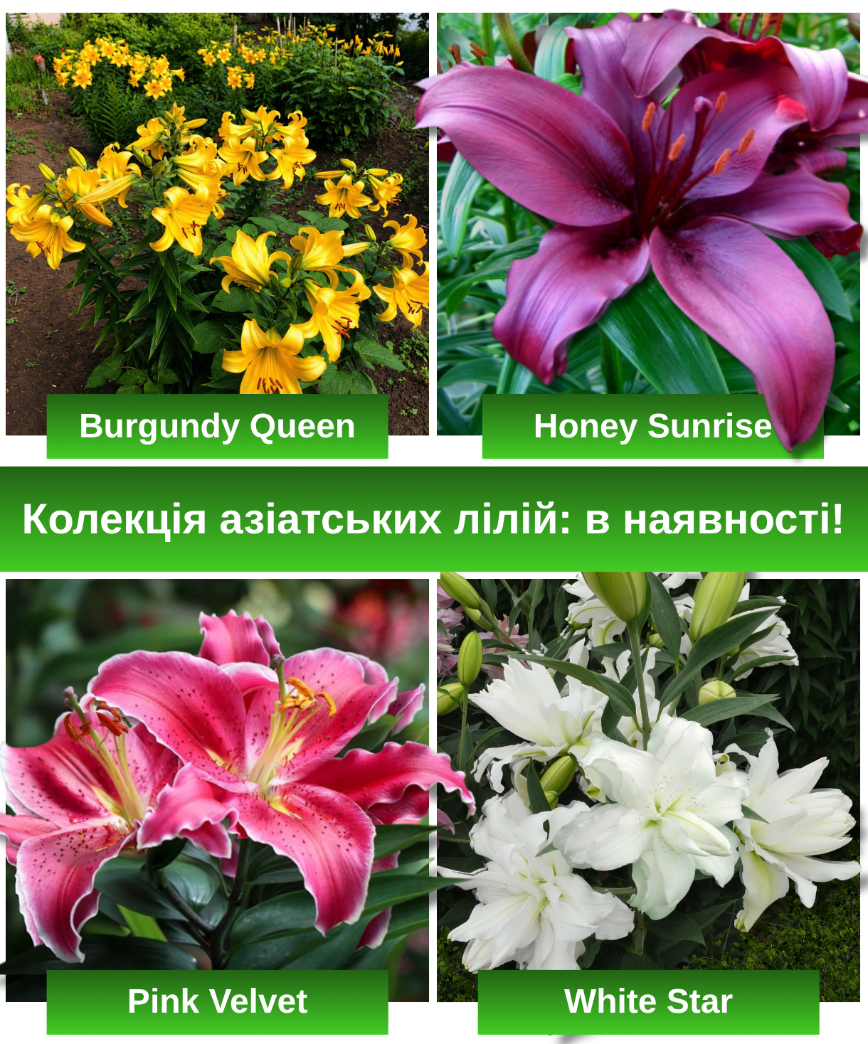 4 сорти азіатських лілій на вибір вже доступні до замовлення