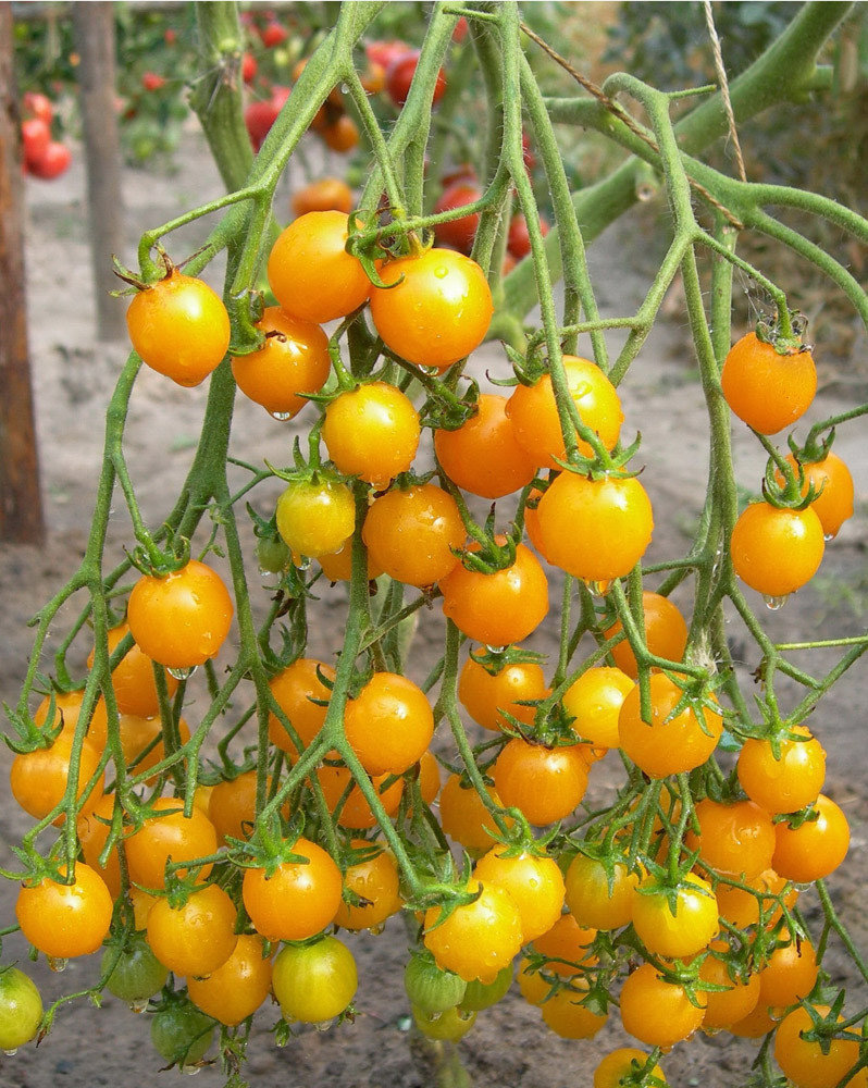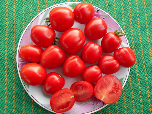 Скарлет мене вразив найбільше — плоди подовгуваті, глянцеві, дуже гарні та м’ясисті. Кущ просто обвішаний помідорками, виглядає, як декоративний. Росте стрімко, плоди не тріскаються. Для канапок та закусок — один із найкращих сортів, що я пробувала.