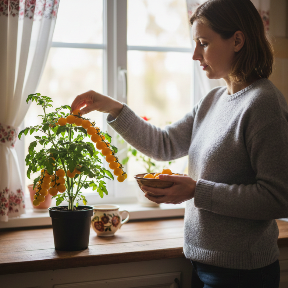 Замовила жовтий Голді, бо діти люблять солоденьке — і не помилилась! Помідорки реально як цукерочки, солодкі й дуже ароматні. Кущ компактний, стоїть на кухні та не займає багато місця. Перші жовтенькі зірвали вже через три тижні. Дуже задоволена!