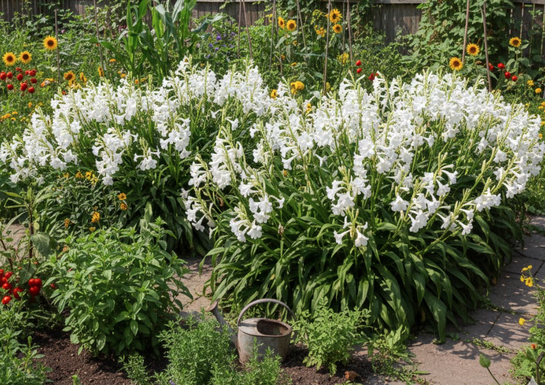 Тубероза відома своїм насиченим ароматом, що наповнює простір навколо.
