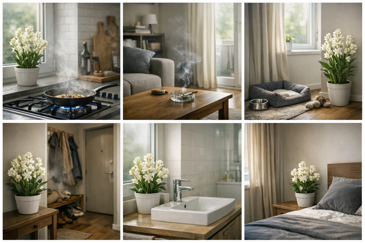 Тубероза не просто додає приємний аромат — вона перекриває і приглушує неприємні побутові запахи, які накопичуються в квартирі. Завдяки насиченому, але м’якому природному запаху, повітря сприймається чистішим і свіжішим, без різких нот і хімії.