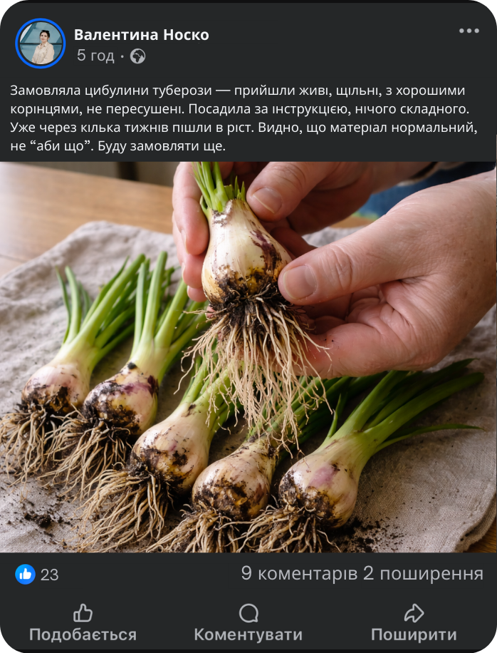 • Строк відправлення: зазвичай 1–2 роб. дні після підтвердження/оплати (у сезон можливі незначні затримки через живий матеріал та об’єм пакування).